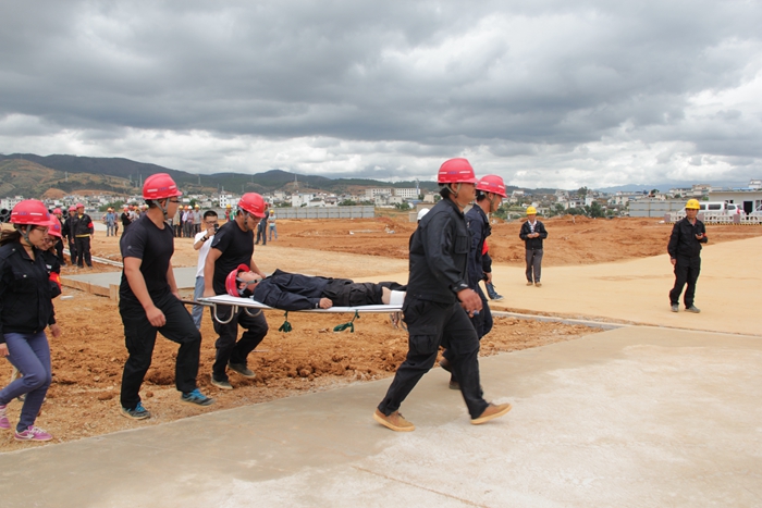 此次參演人數(shù)為100人,其中管理人員30人,勞務(wù)人員70人。演練特別邀請了隆陽區(qū)公安消防大隊楊教官、建設(shè)單位指揮部領(lǐng)導(dǎo)、監(jiān)理單位代表、保山保障房項目指揮部代表蒞臨現(xiàn)場進行指導(dǎo)。