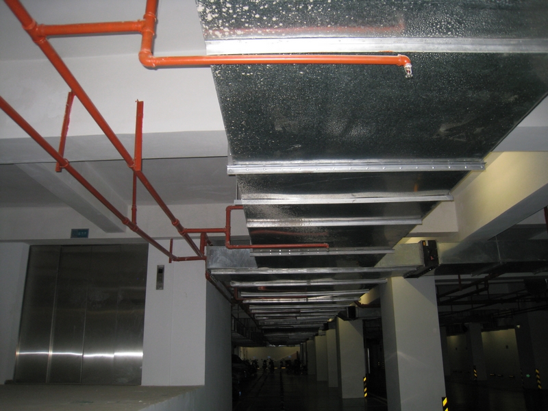 風(fēng)管腹面下的噴淋頭安裝