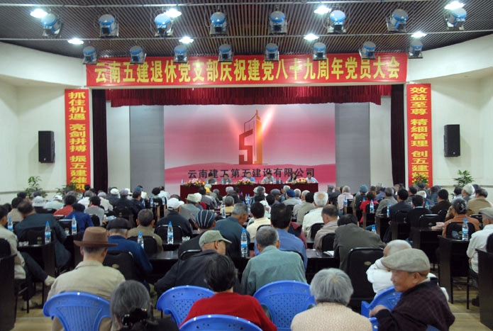 在建黨八十九周年來臨之際,云南五建退休黨支部于2010年6月30日在公司大禮堂隆重召開大會慶祝“七 .一”建黨節(jié)。公司董事長、黨委書記楊福和等到會看望了老黨員并作重要講話。 參加大會的退休老黨員有186名,是退休支部到會人數(shù)最多的一次。盡管天下著大雨,大部分老黨員年事已高、行動不便,家離公司又比較遠,但他們?nèi)园磿r趕...