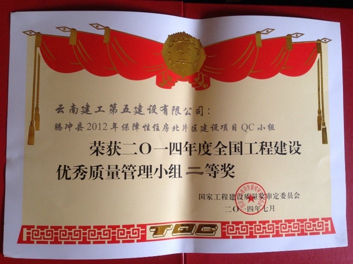 2014年度全國工程建設(shè)優(yōu)秀質(zhì)量管理小組的代表會議于7月8日至10在昆明召開,經(jīng)過兩天的激烈討論,經(jīng)評委綜合打分評定,五〇六直管項目部施工的騰沖縣2012年保障性住房北片區(qū)建設(shè)項目QC小組的《提高剪力墻砼外觀質(zhì)量合格率》課題,獲得了全國工程建設(shè)優(yōu)秀質(zhì)量管理小組二等獎。 為了迎接本次成果的發(fā)布會,五〇六直管項目部做了精心的組...