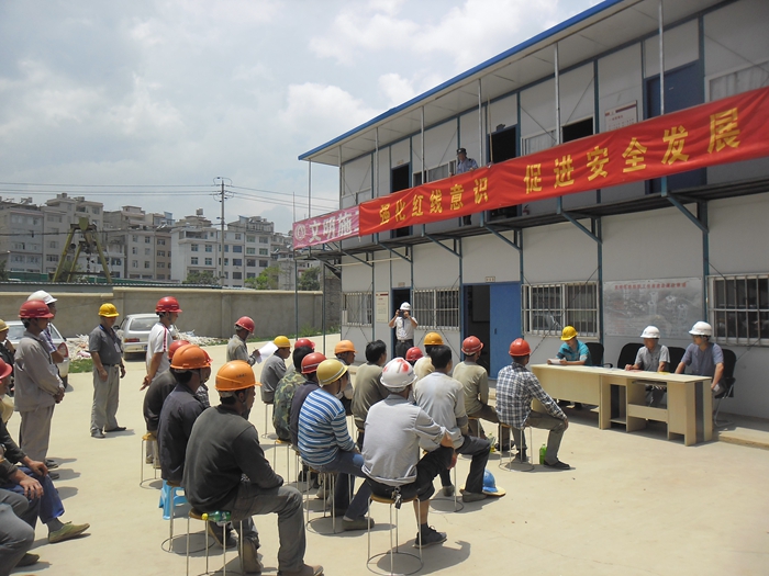 6月16日,五〇五直管項目部昆鐵盛和苑一標(biāo)段項目部以“強化紅線意識 促進(jìn)安全發(fā)展” 及“千萬農(nóng)民工同上一堂課”為主題的2014年“安全生產(chǎn)月”活動,在施工現(xiàn)場舉行。直管部領(lǐng)導(dǎo)班子及生產(chǎn)綜合管理科室人員參加了此次活動,項目經(jīng)理汪家順全程主持本次活動。 此次安全培訓(xùn)覆蓋項目部所有管理人員及農(nóng)民工,分為三個部分:首先,直管部領(lǐng)導(dǎo)...